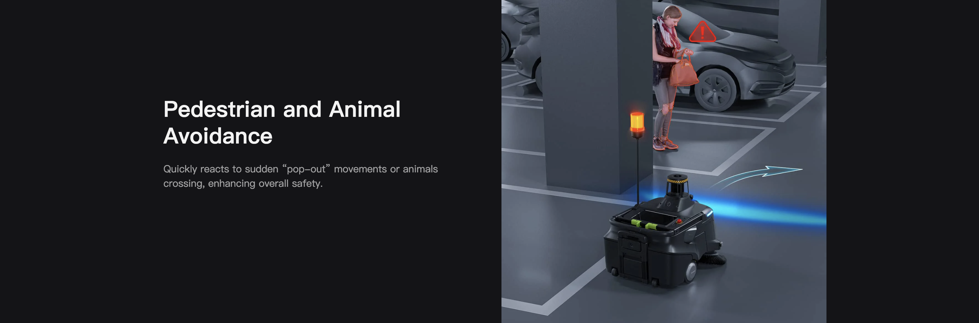 Advanced sensors detect and navigate around obstacles, ensuring safe operation.