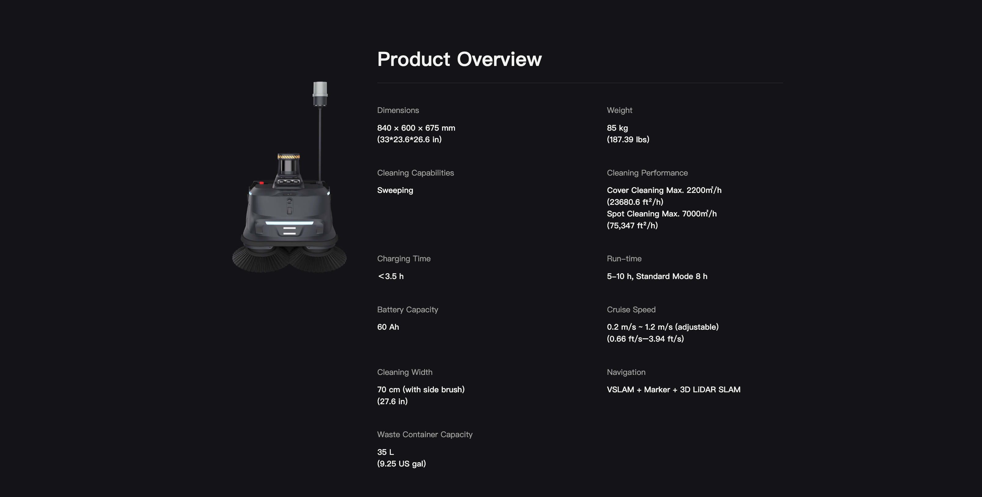Revolutionary robotic sweeper designed for commercial and industrial environments with unmatched efficiency and reliability.